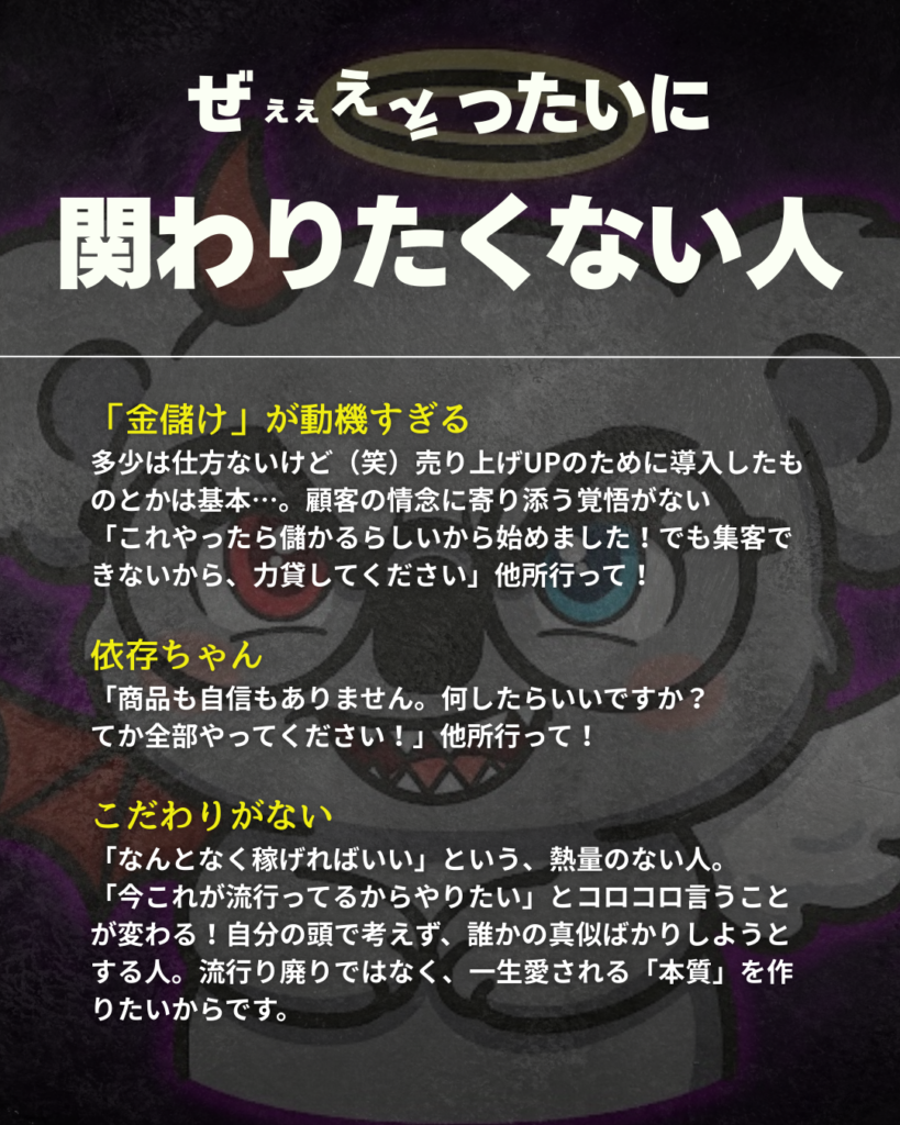 挨拶不要、黙って私の脳内のクリエイティブを勝手に使いまくってお客さん呼んで下さい